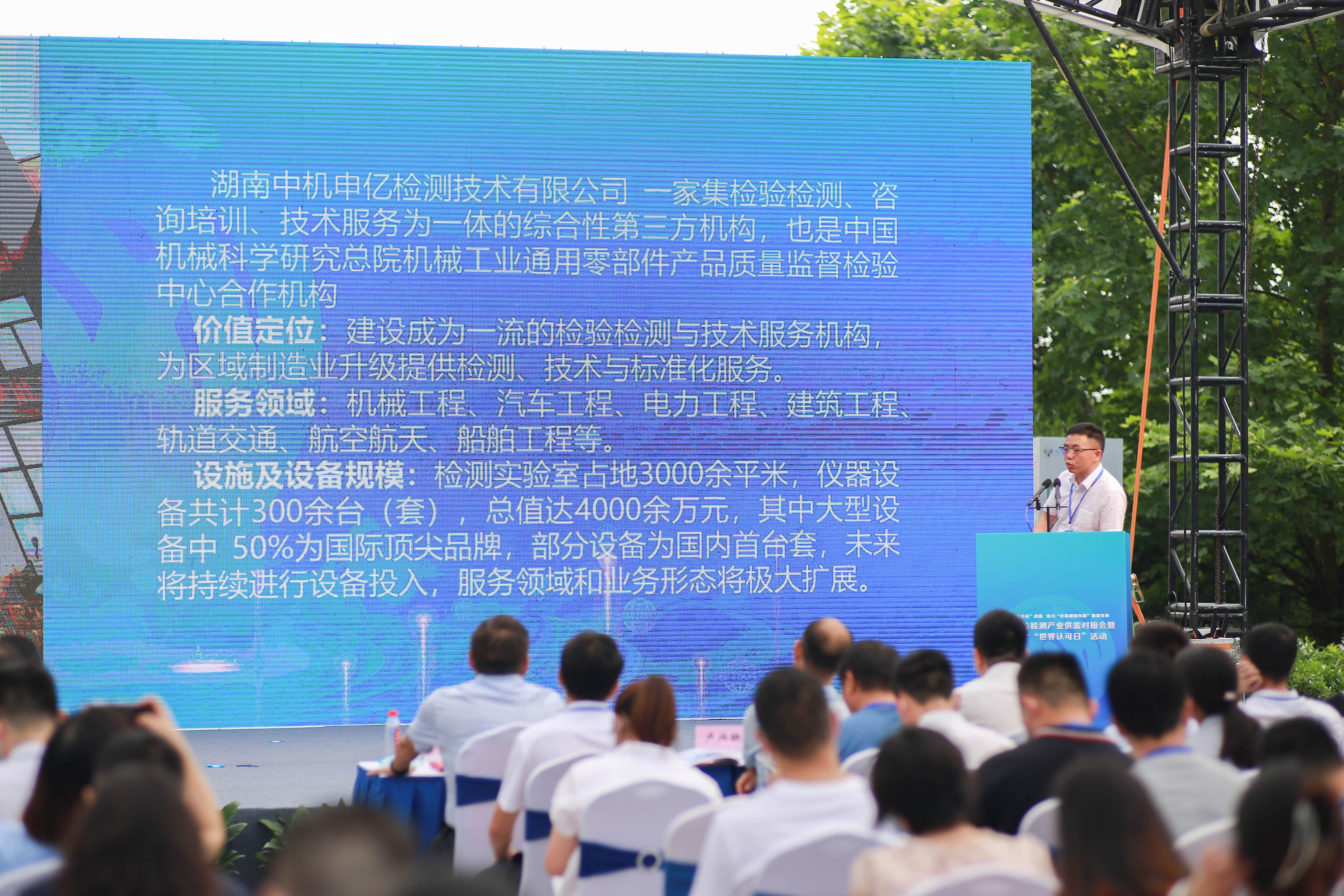 活動(dòng)現(xiàn)場(chǎng), 湖南中機(jī)申億檢測(cè)技術(shù)有限公司總經(jīng)理呂闖作為檢驗(yàn)檢測(cè)機(jī)構(gòu)代表之一,上臺(tái)介紹了公司在檢驗(yàn)檢測(cè)能力建設(shè)及公司未來(lái)發(fā)展的目標(biāo)。湖南中機(jī)申億檢測(cè)技術(shù)有限公司將以市場(chǎng)為導(dǎo)向,優(yōu)化資源配置,堅(jiān)持技術(shù)創(chuàng)新和制度創(chuàng)新,更快更高效的為客戶提供全方位的測(cè)試認(rèn)證服務(wù)。