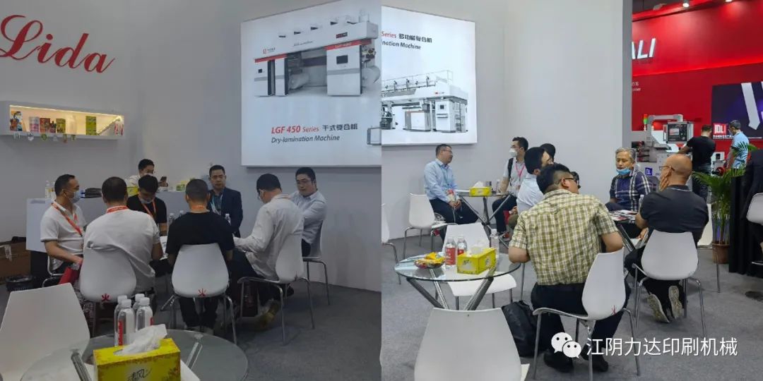 在“碳中和”、“碳達(dá)峰”、“限塑令”升級下的橡塑行業(yè),發(fā)展循環(huán)經(jīng)濟(jì)、節(jié)能減排等正當(dāng)其時。這不僅僅是各界熱議的話題與挑戰(zhàn),更暗藏著巨大的新市場、新機(jī)遇,眾多新能源、5G、新材料等企業(yè)聞訊而來。開展四天來,許多觀眾紛紛來到展臺進(jìn)行商務(wù)洽談,其中公司最新研發(fā)的LDF 450型多功能復(fù)合機(jī)以及LGF 450型干式復(fù)合機(jī)收到了客戶的廣泛關(guān)注,咨詢客商不斷。該機(jī)型最高機(jī)械速度為450m/min,支持無溶劑、網(wǎng)線輥、半柔版、定點涂布等多種涂布方式,實現(xiàn)一機(jī)多用,為客戶節(jié)約更多的成本,實現(xiàn)更高的經(jīng)濟(jì)效益。
